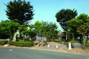 平成6年に竣工した「川の一里塚」で,眼下を流れる鬼怒川と流域の歴史・文化を背景に「水防・親水・水辺交流の拠点」の機能を担うものである。敷地内には蕪村の句碑がある。