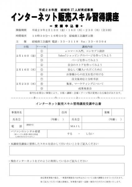 結城商工会議所ホームページ(新しいウインドウで開きます)または窓口にて申込用紙を取得し,必要事項をご記入のうえ,直接ご持参ください。(2月1日締切)