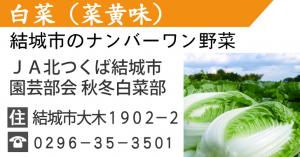 茨城県は生産量・生産額ともに日本一の白菜の産地。特に結城市は白菜の生産が盛んです。JAGAPに取り組み、安全・安心・高品質の白菜を安定的に供給しています。 |